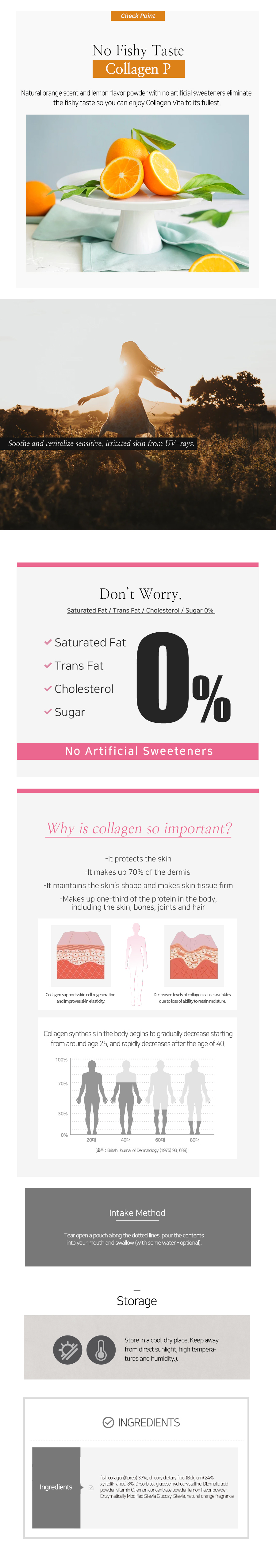 2. Fish collagen is made of 100% fish scales. Minimized molecular weight of Collagen strengthens digestion and absorption in body and therefore effective in preventing skin damage and aging.