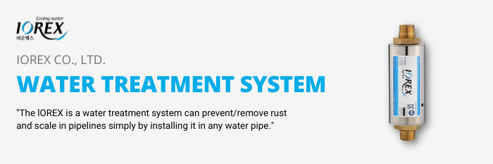 IOREX is a water treatment system that can prevent and remove rust, scale, and slime in pipelines by installing it on any water pipes.
