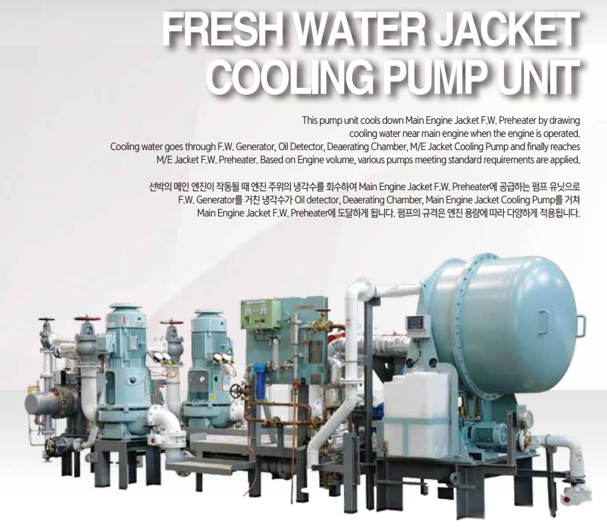 The F.W Jacket Cooling Pump Unit draws cooling water near the main engine during operation