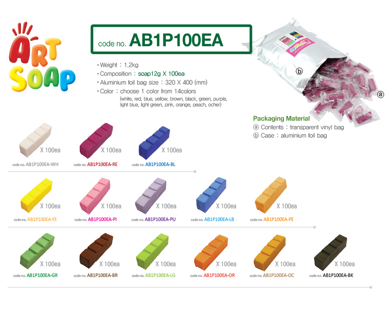 - Art Soap Clay ABP1P100 is packaged in a plastic bag.
