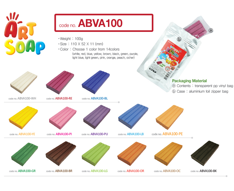 - Art Soap Clay ABV100 packaged in a plastic bag.