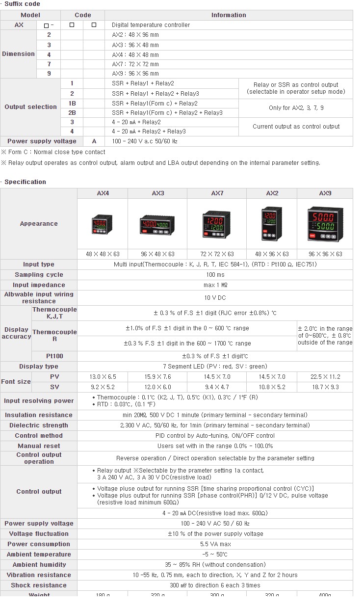 PID digital temperature controller - Multi-Input/Output - High-speed sampling cycle (0.1 sec) - Installation depth : 63mm - Control output selectable : Reverse operation/Direct operation - PID auto-tuning