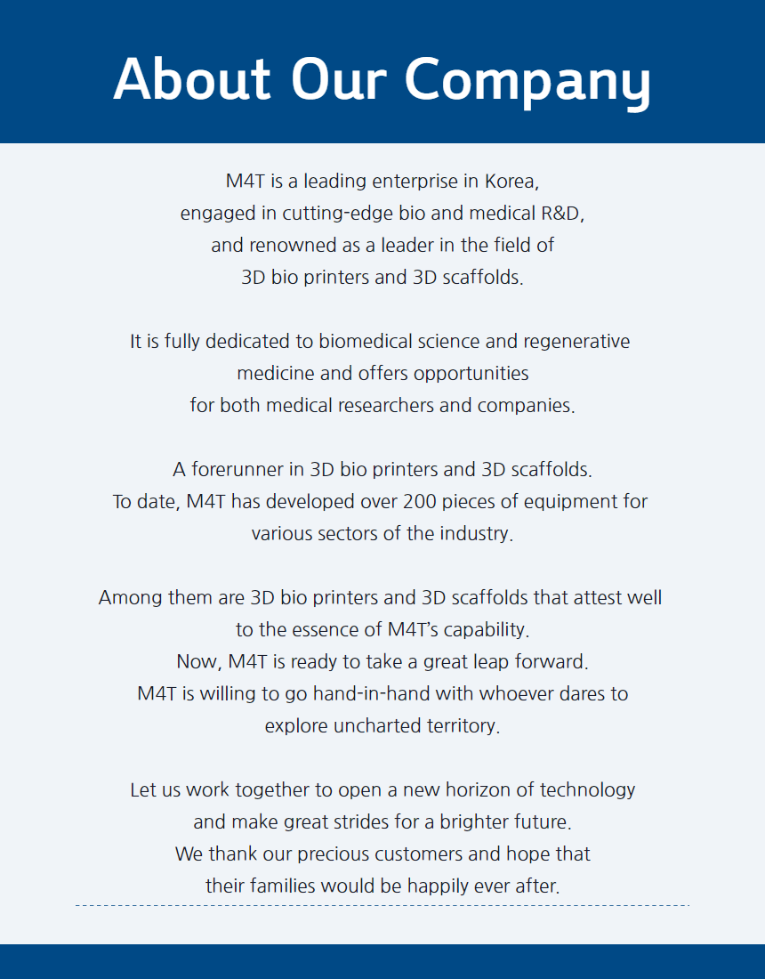 factors, and excretes waste matter smoothly. M4T offers porous 3D scaffolds