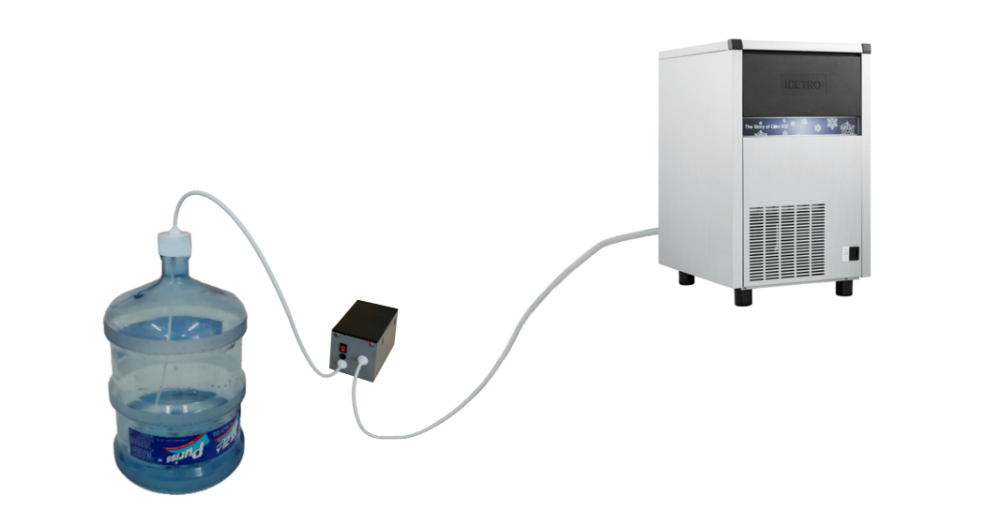 When T-JET is installed with a fully automatic espresso machine or ice machine etc., and the suction wand is inserted into the water bottle, the pump will run to deliver water to the water inlet of the mahine or to the water faucet of the sink.