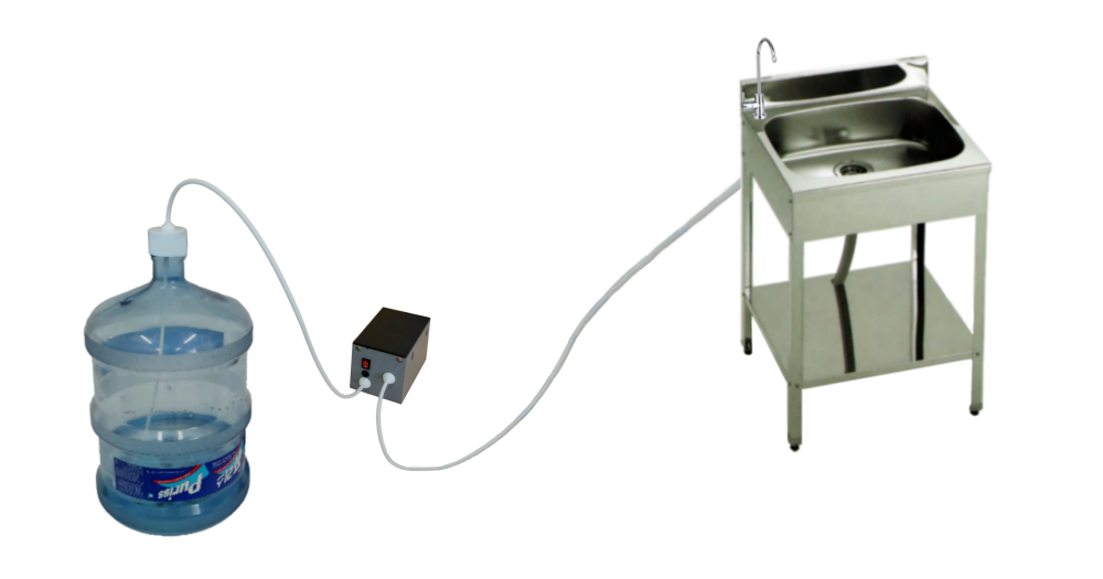 When a water bottle is connected to the pump, purified water is available for use with espresso machines, instant coffee machines, water dispensers, ice makers, instant noodle cookers, coffee or tea makers, movable sinks or any other application where bottled water is needed.