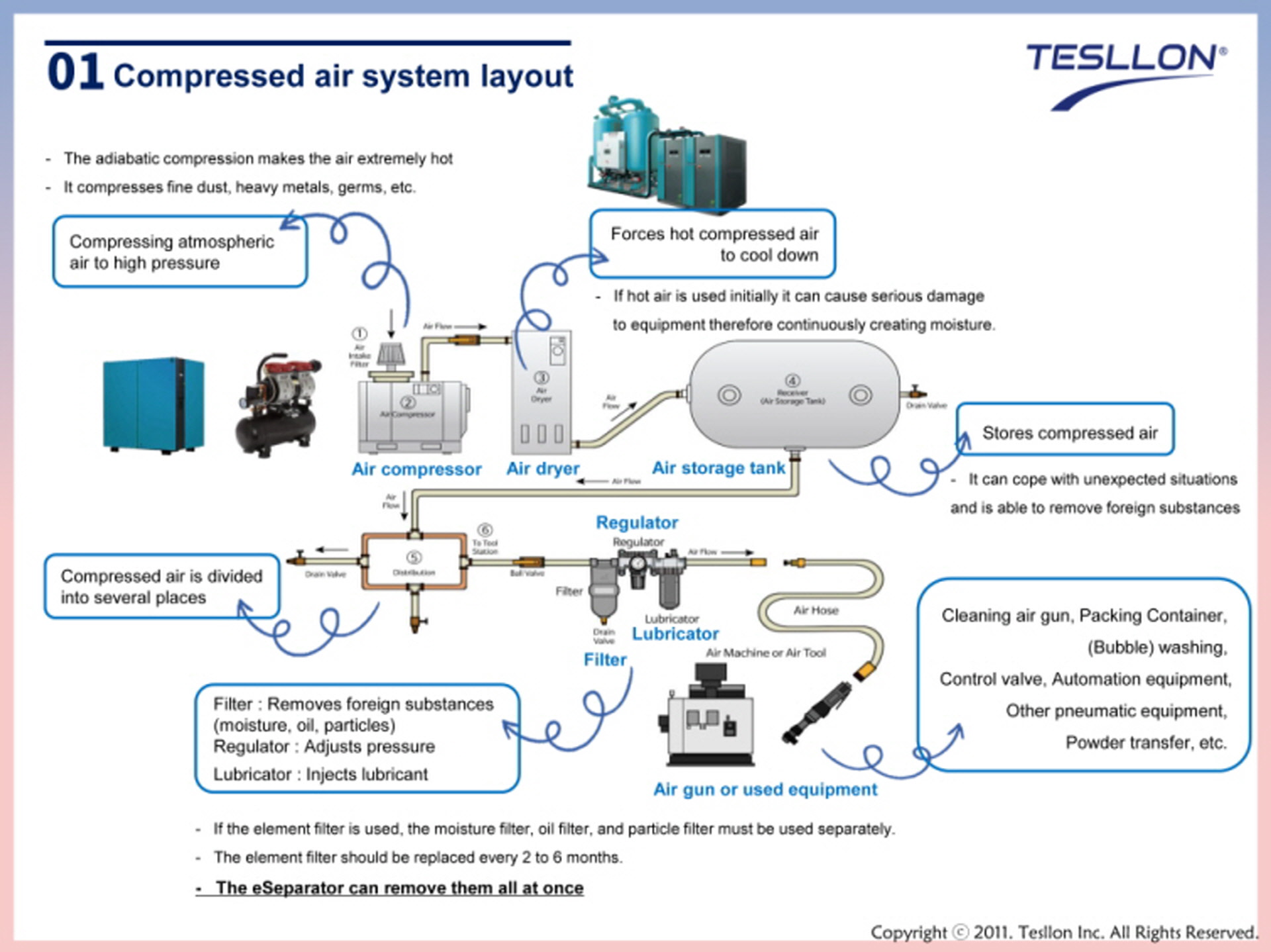 · Preventing corrosion of pneumatic equipment internal parts due to moisture