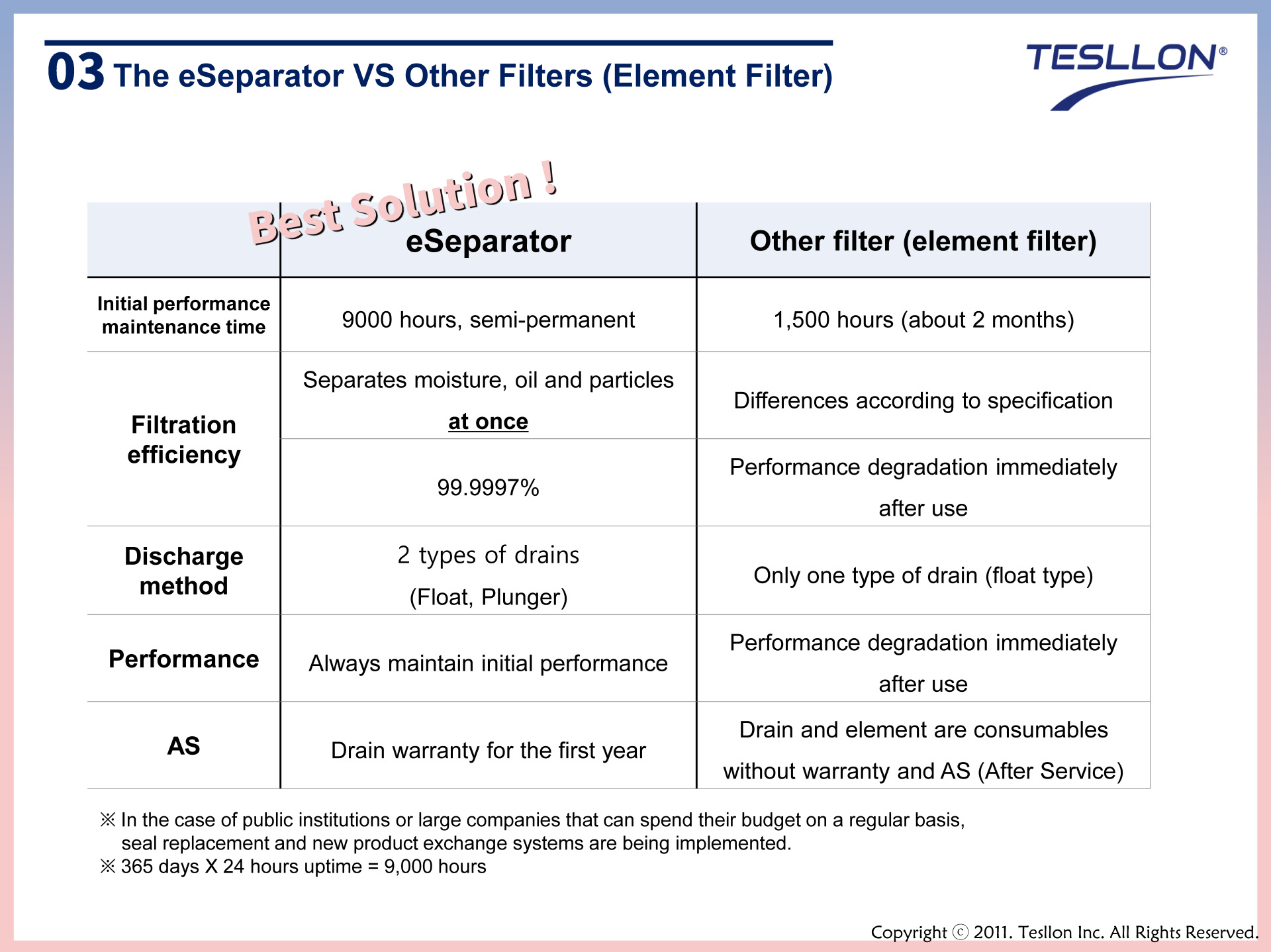 · Reduced maintenance costs such as element replacement