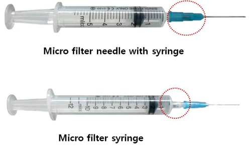 Micro filter syringe II is a product that the filter is inserted inside the syringe. This type of syringe is the world's first.