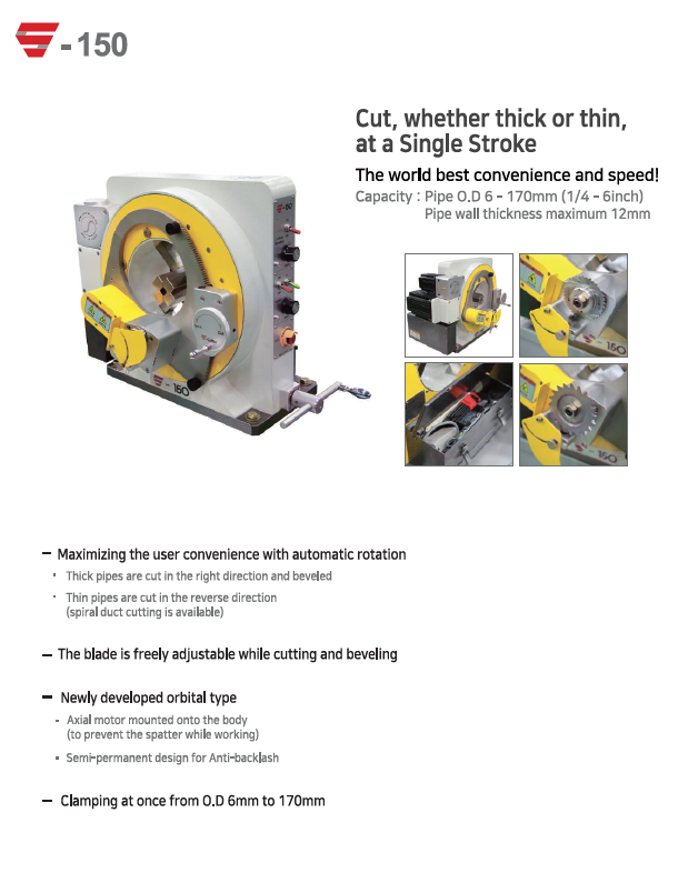 - 1/4'' - 6'' (Pipe O.D 5mm - 170mm)