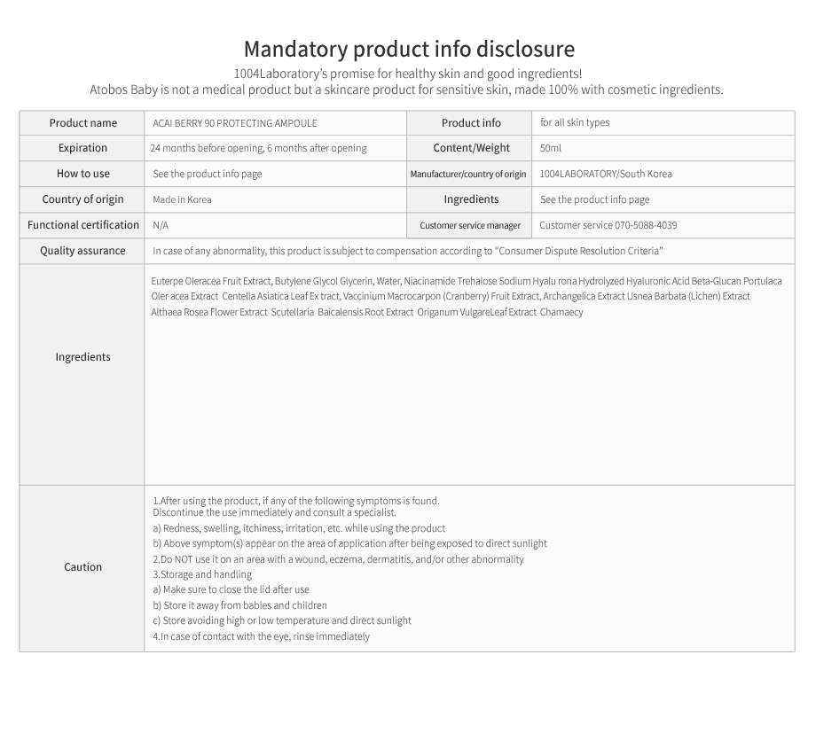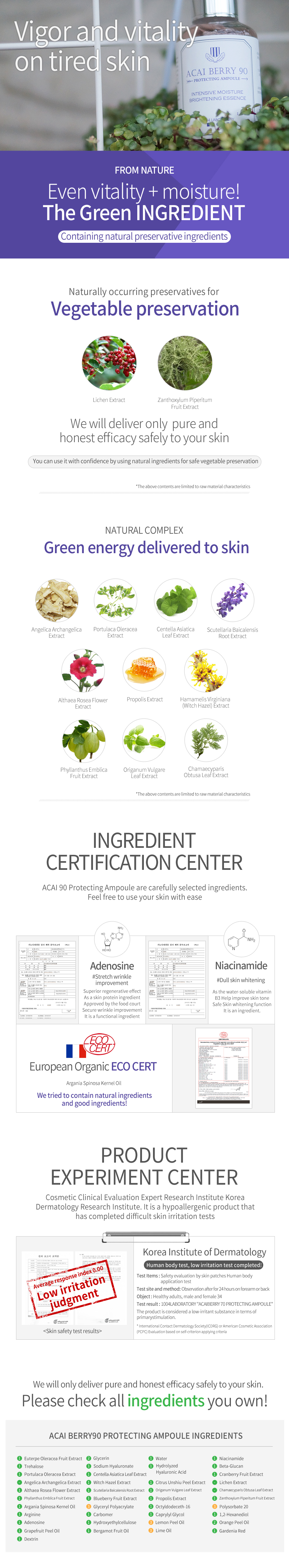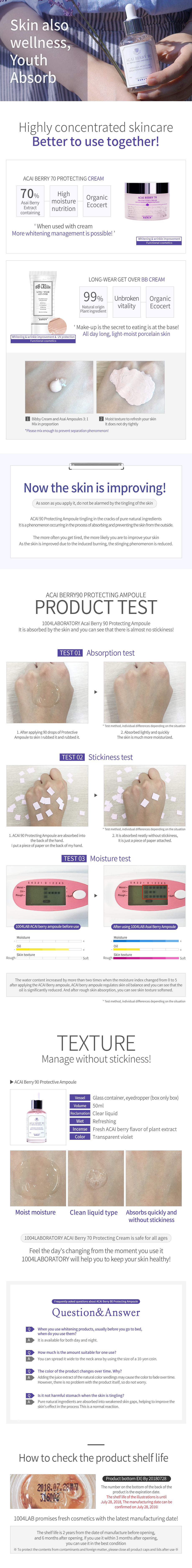 Its main ingredient is acai berry from Amazon(90%), which strengthens the skin layer with excellent anti-oxidative activity