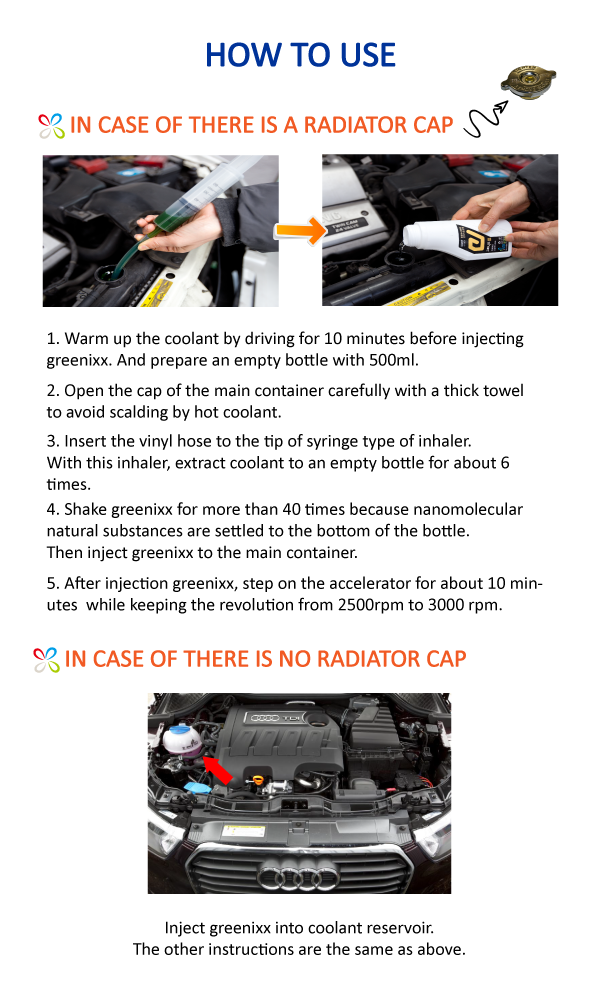 greenixx Ⅰ,Ⅱ,Ⅲ,Ⅳ Fine and ultrafine dust reduction & fuel efficiency improvement (coolant additive).