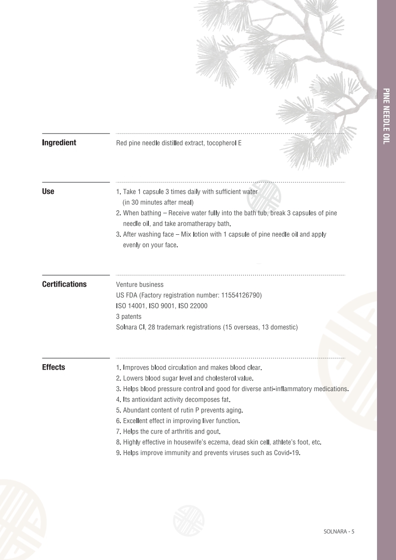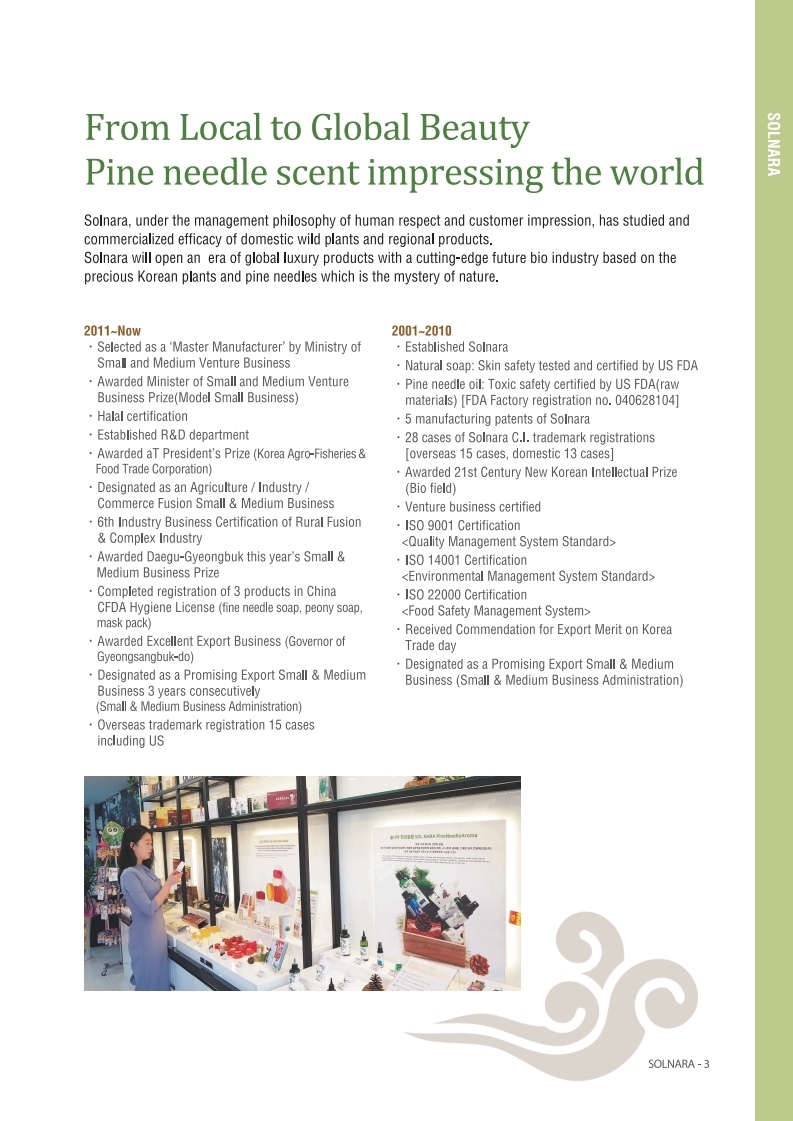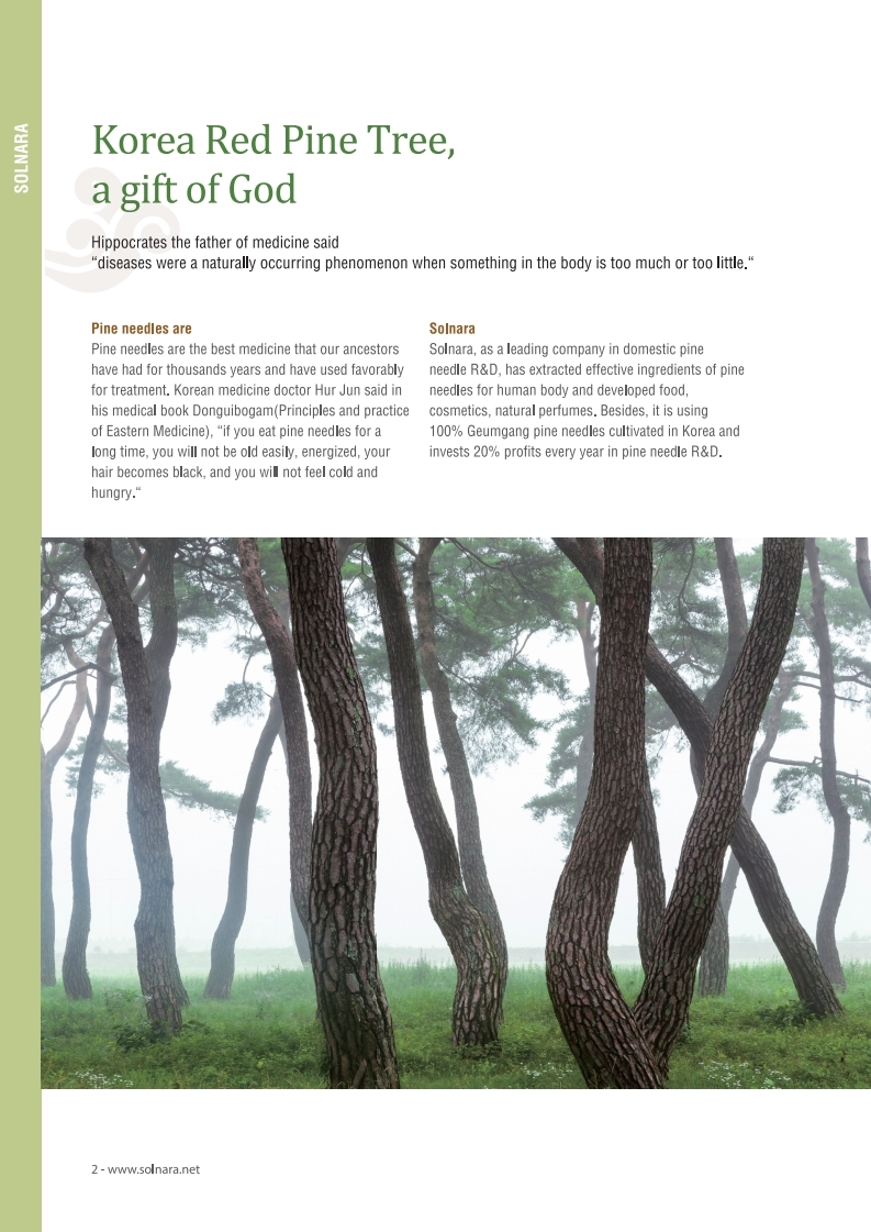 It is an honor to introduce Solnara to your company at this time. Even though viruses can always penetrate the human immune system, we are sure that pine needles will be helpful because they have excellent antibacterial and immunity properties. It is a very appropriate natural substance for health and hygiene in the current virus era.