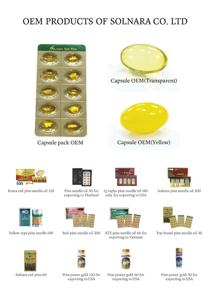 In addition to the pine needle capsules proposed now, Solnara produces over 30 products using pine needles as the main raw material. Because we can design the product the way you want, you can inquire about it at any time. We are always ready for smooth mutual communication about product design, ingredient mixing ratio, capacity, packaging method, product composition, and so on.
