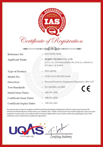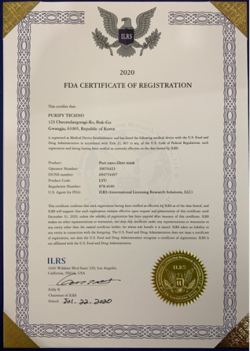 Nano Filter Face mask Certified From CE(2193) and US FDA as LUY and EUA