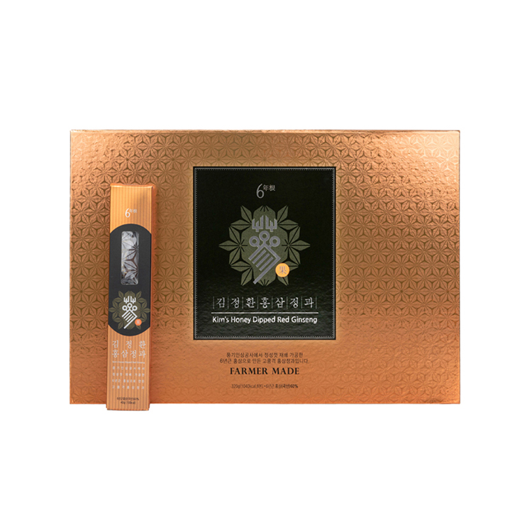 Made through a patented method of manufacturing honeyed edible roots, this product was made by steaming 6-year-old red ginseng roots, dipping them in honey and drying them.