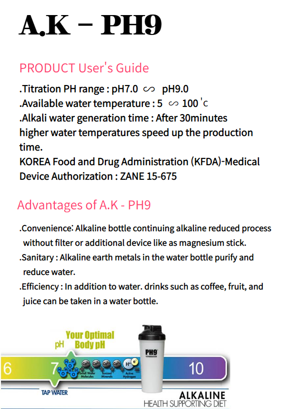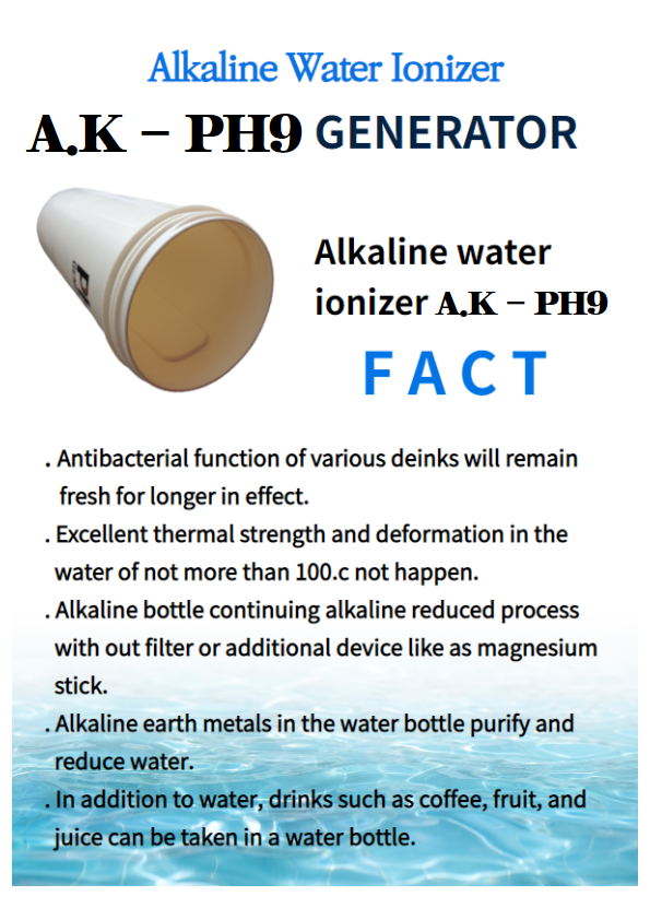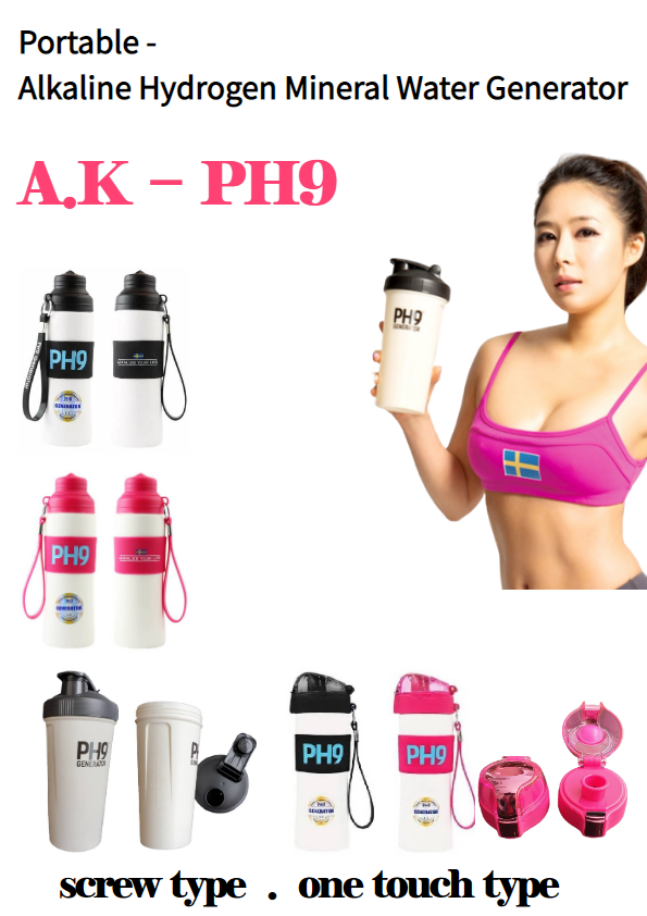 A.K PH9 product is the world's first portable alkaline water bottles.