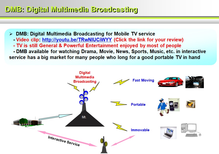 <DMB: Digital Multimedia Broadcasting for Mobile TV service>