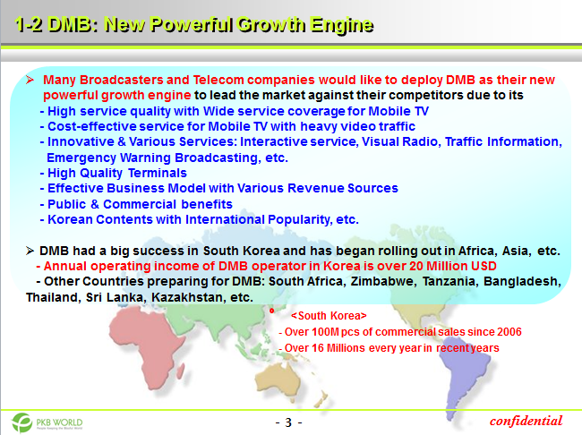 Mobile TV DMB for watching Drama, News, Sports with interactiveservices has a huge market.