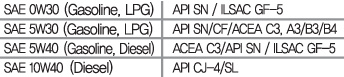 Type: SAE 0W30, SAE 5W30, SAE 5W40, SAE 10W40