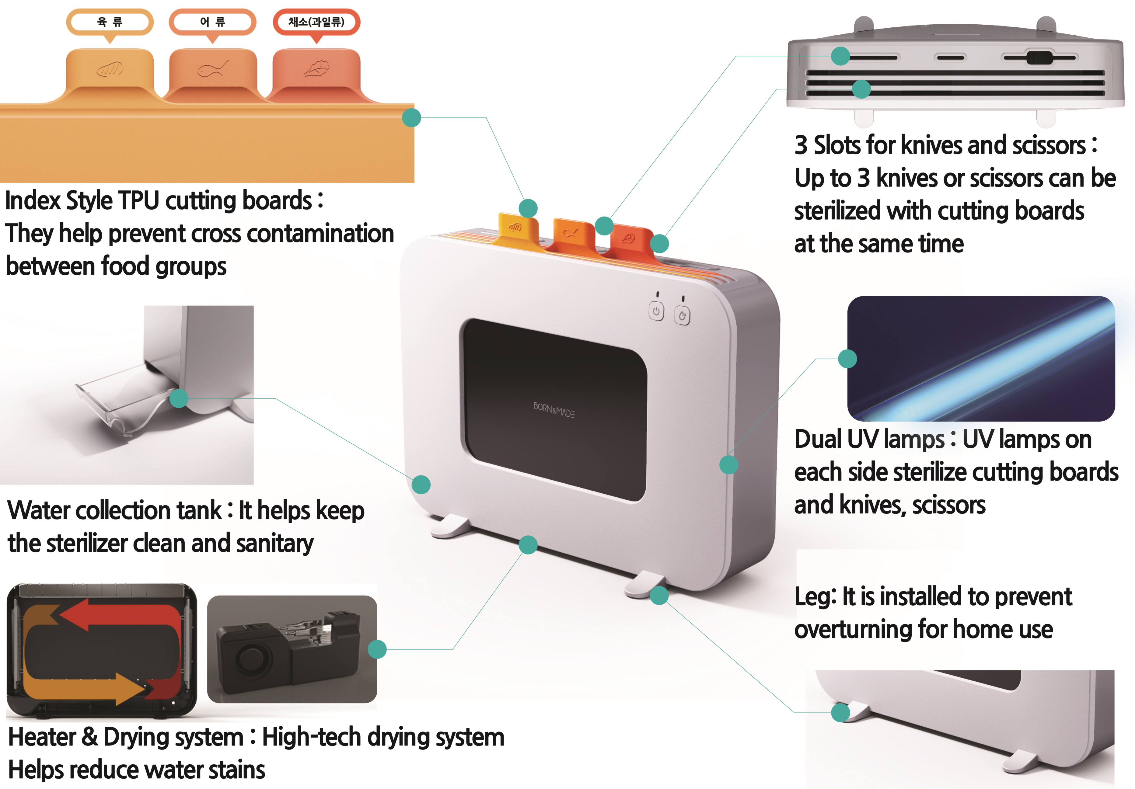 Using ultraviolet lamps and high-tech heating system, BORN&MADE Cutting Board Sterilizer ensures the best disinfection rate.