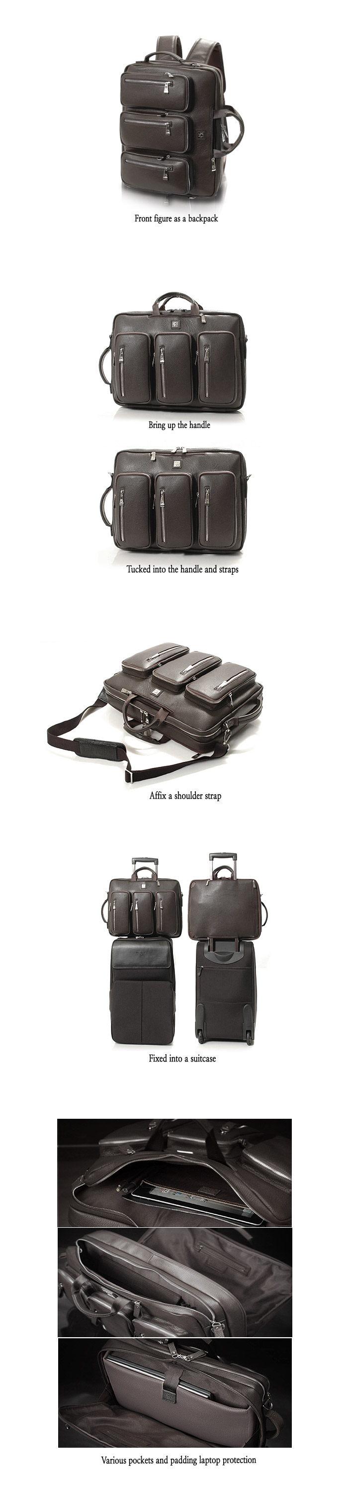 KM61 is a multifuntional bag, business briefcase, backpack and cross bag for business trip.