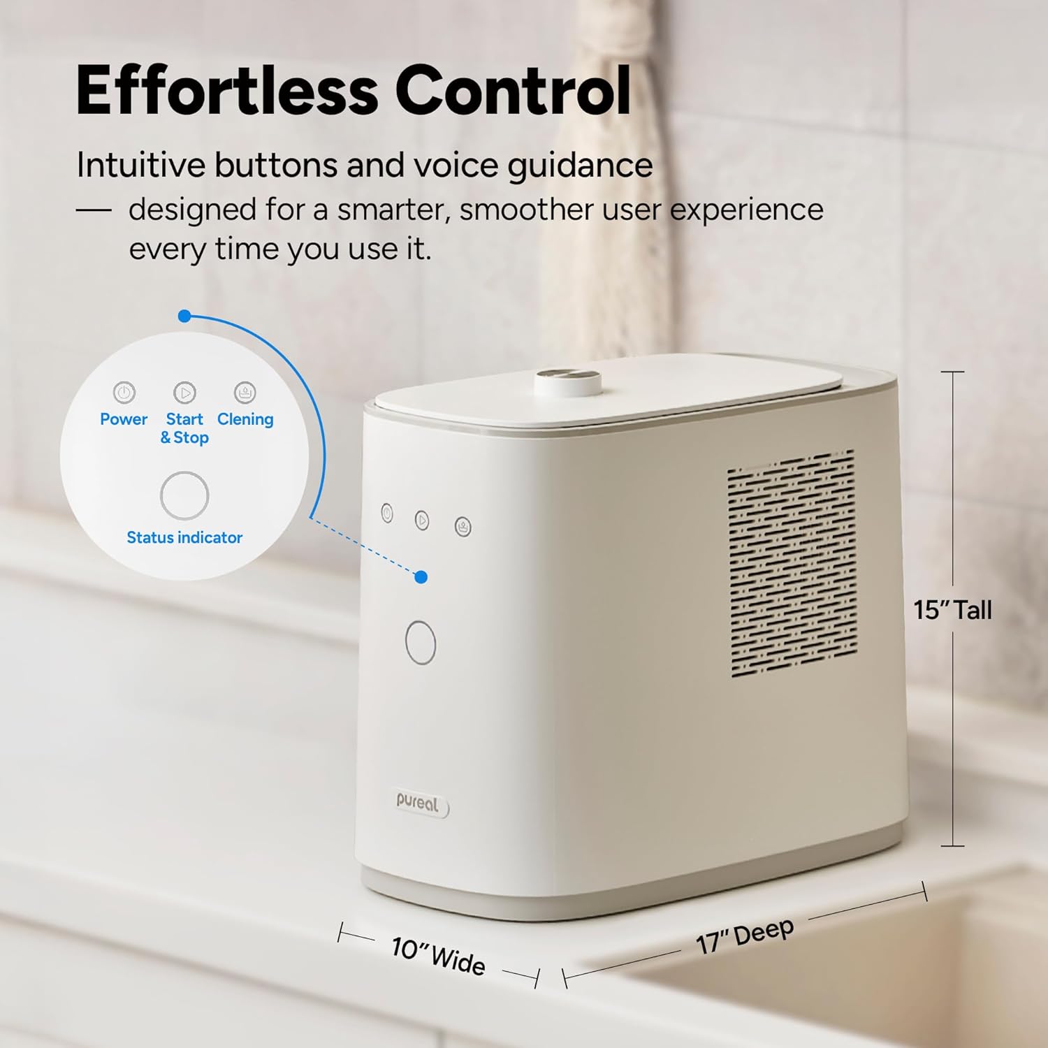 Pureal Cleanus food waste composter effectively reduces food waste volume through drying and grinding technology, preventing odors and bacteria. Its quiet operation and deodorizing system maintain a pleasant kitchen environment. Its ease of use and minimal maintenance make it accessible to everyone.