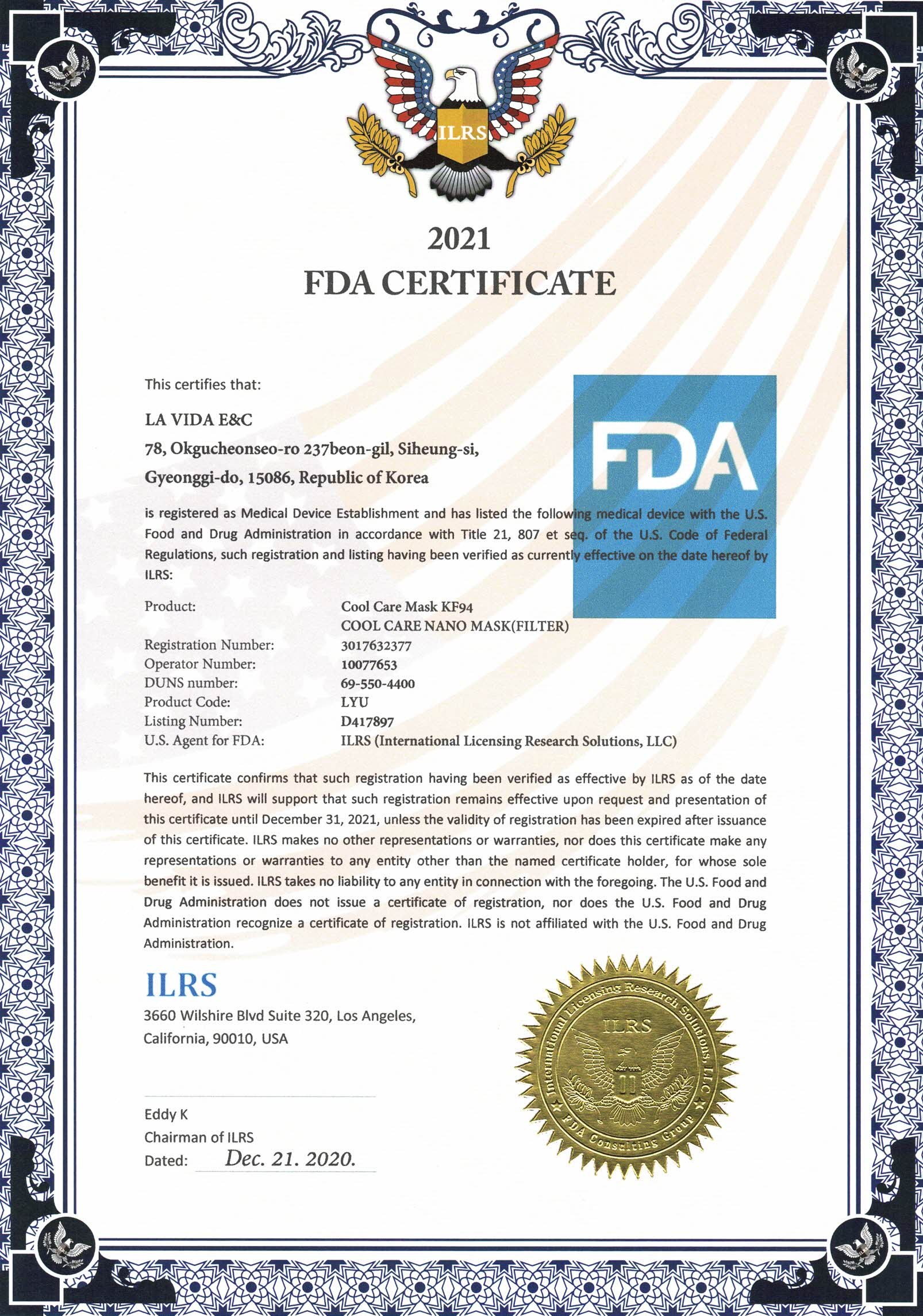 LA VIDA E & C CO., LTD established in 2020, produce and sales the mask(respirator),