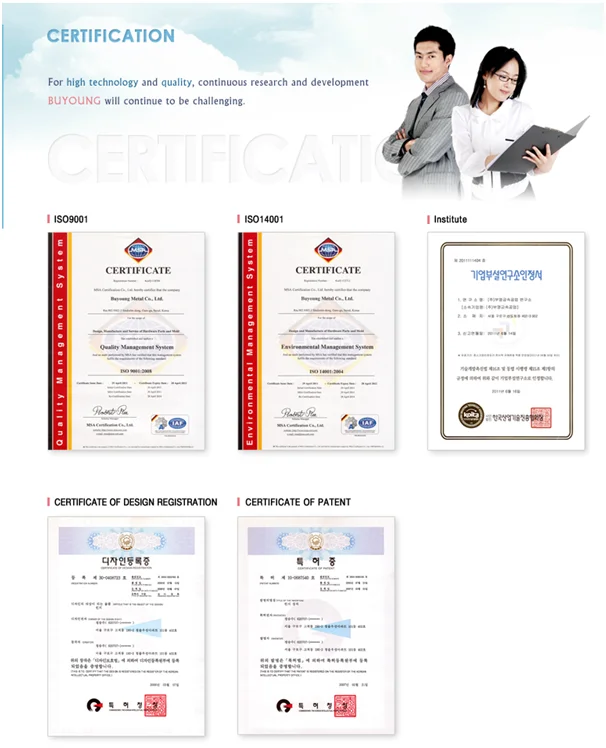 BUYOUNGMETAL CO., LTD. has 2 factories and 5 branches. We send our products through South Korea by delivery service, as well as, have traded with many foreign companies. We can supply any kinds of business with industrial components. Our products apply to manufacturing equipment and products of all industries.