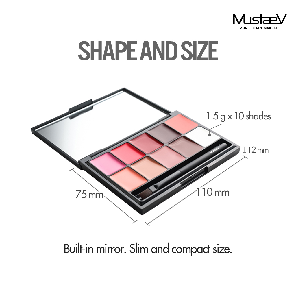 *The MustaeV 10 Lip/Cream Pro Palette with mirror is convenient for touch ups throughout the day.