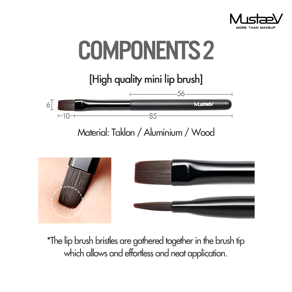 -High quality mini lip brush / Size: 95 x 6mm / Material: Techron/Ferrule-Aluminum /Handle-Wood