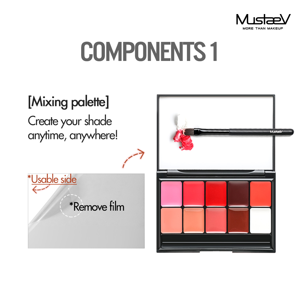*Mix various shades on the white acrylic plate to customize lip shades.
