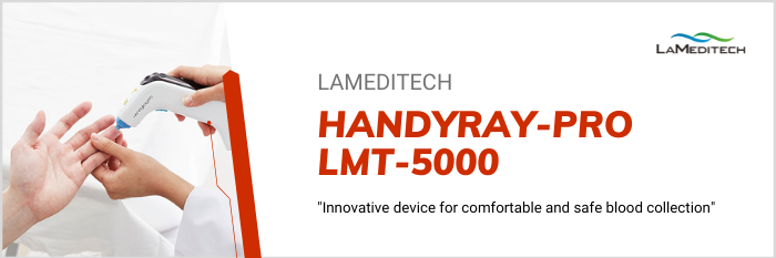 HandyRay-Pro is a professional laser blood collection tube exclusive for hospitals and medical institutions that collect peripheral blood by using a laser without using a needle.