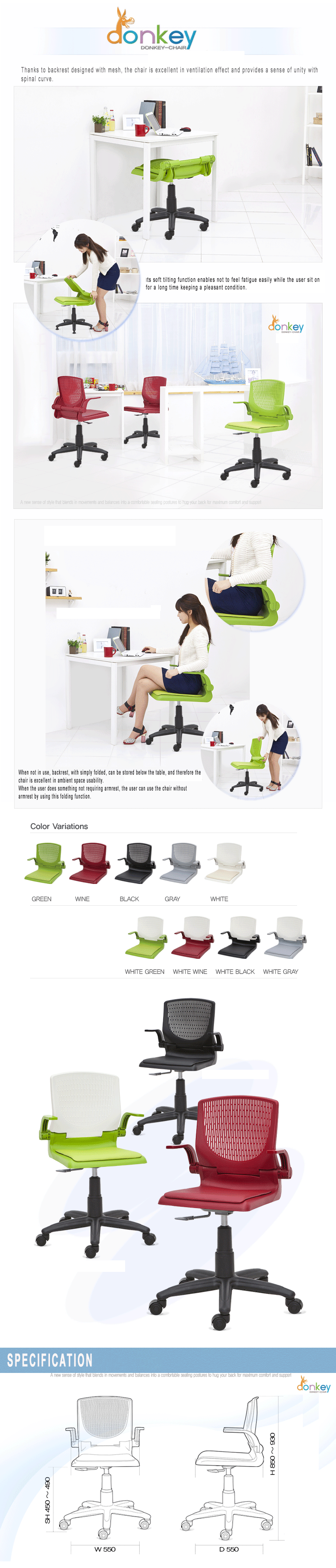 Thanks to backrest designed with mesh, the chair is excellent in ventilation effect and