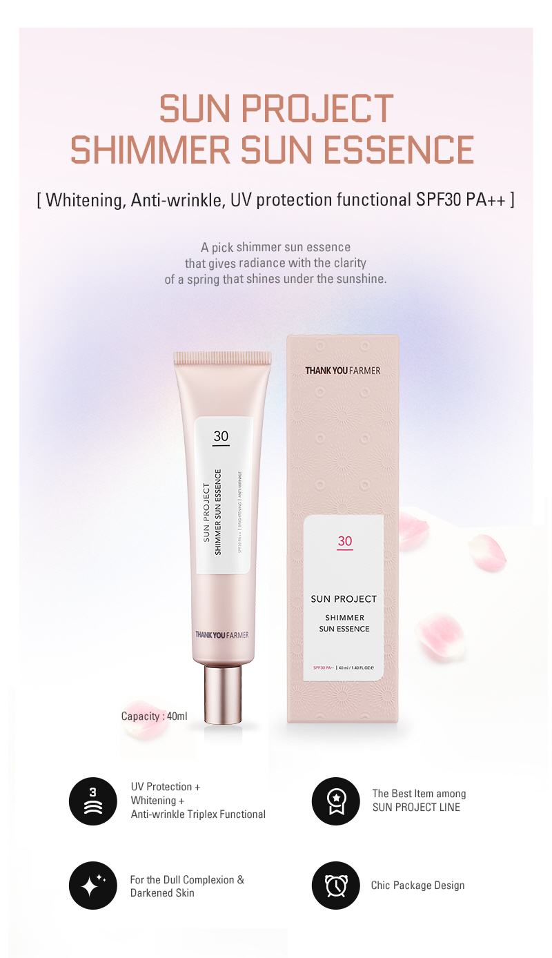 - A one-of-a-kind sunscreen essence that protects your skin and has an anti-aging, brightening effect. It makes your skin sparkle with a slight tint of pink pearl and make it shimmer and radiant.