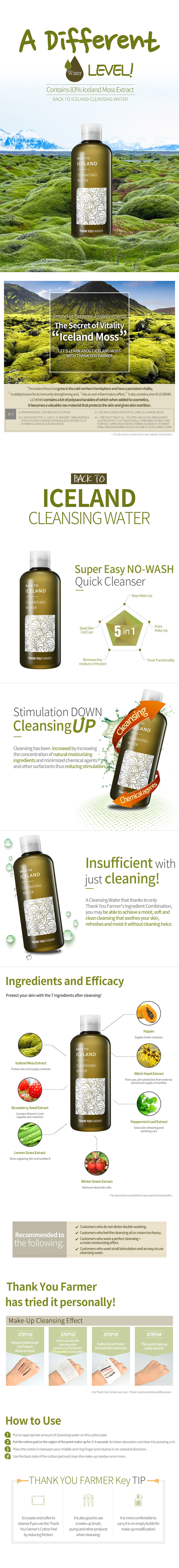 Cleansing water clearly cleansing skin wastes with Iceland Moss extract that is growing with strong life force in a cold region.