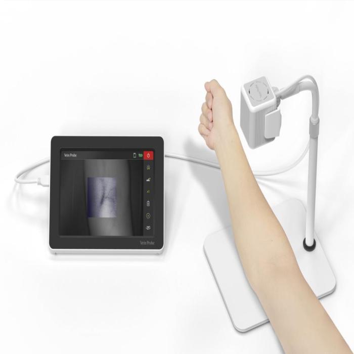 The Vein Probe, a leading medical device, is equipment that displays real-time images of subcutaneous blood vessels on a screen. As a Class 1 medical device, it helps healthcare professionals find veins quickly and easily, allowing for more accurate injections through real-time imaging.