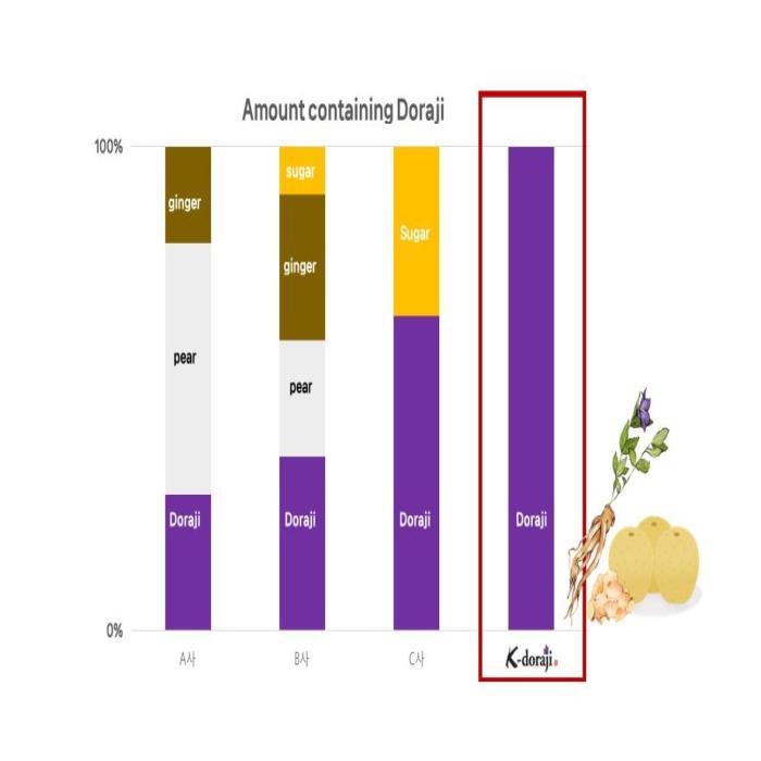 - K-doraji is a premium herbal root raised in mountainous areas where cleaned for 3-4 years and containing the right amounts of Saponin and Inulin.