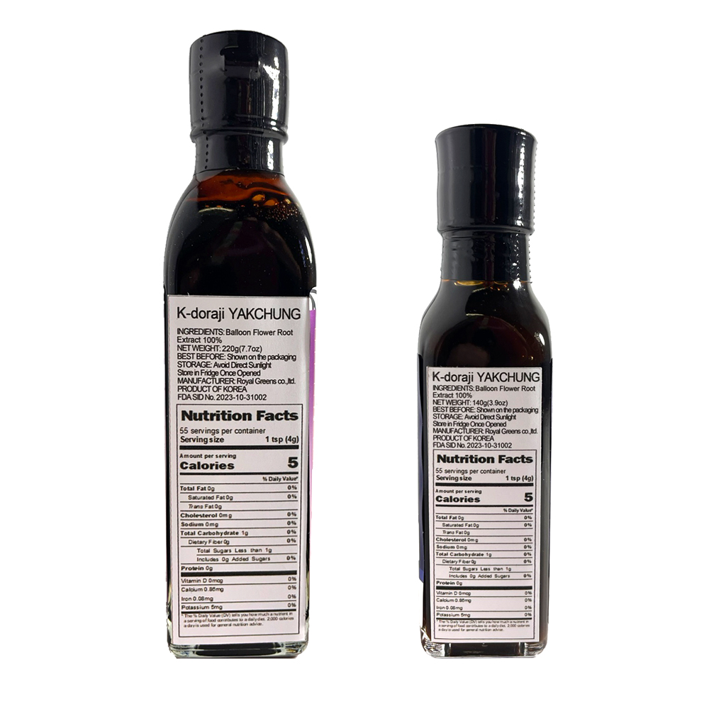 - K-doraji Extract Concentrate Liquid is 100% pure balloon flower root extract grown 3-4 years in Korea and mature harvested.