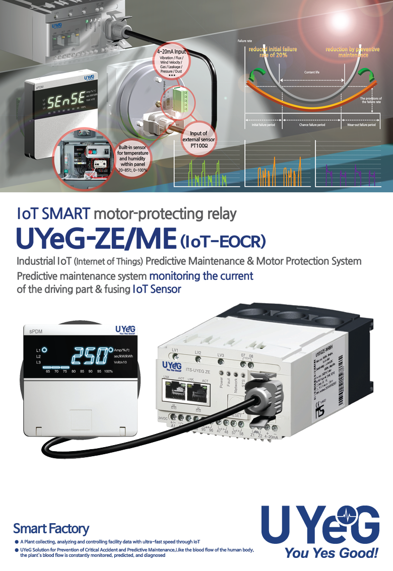 UYeG motor protector is the product of the fourth industrial revolution with the purpose of protecting and monitoring the motor. UYeG is able to measure the voltage, wattage, current, temperature / humidity, grounding current and short-circuit current simultaneously and provides the total solution to protect and monitor the motor. The product monitors the voltage, current and the wattage in real time and saves approximately 10% of the energy. The product improves the safety and the maintenance of the motor using the failure’s waveform records. The product also contains the safety function for the high grounding current to improve the safety. UYeG has a low maintenance fee, because it is a single device product that is unified with a power meter.