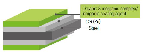 | Surface Treatment Agents for CGI | This solution is made of compound resin which provides Non-Cr environmentally friendly, water based, thermosetting at low temperature, organic and inorganic properties. By the application of the agent, hot dip galvanized steel sheets(CGI/HGI/HDG) have anti-corrosion, machinability and multi-functions. |
