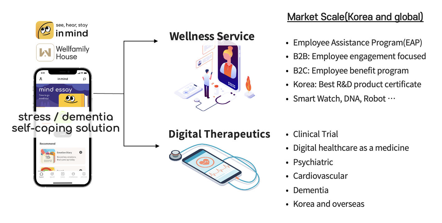 'in mind' contents consist of stress management programs, such as location-based ‘healing sound’, emotion controlling diary ‘emotion diary’, cognitive therapy-based program ‘rethink’ and ‘meditation.’