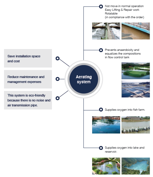 Then the circulating water sucks in air from the water surface to the impeller and the impeller agitates “water-air” inside the water.