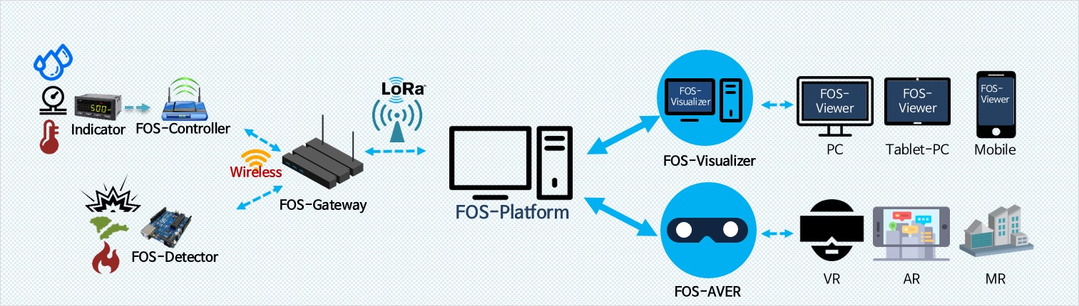FOS (Factory On-Smart) solution provides optimal process conditions by collecting and analyzing big data in the devices industry field and realizes smart factories by detecting and warning against industrial disasters including fire and gas leakages, providing 3D monitoring services through 3D virtual modeling, and controlling industrial safety and integrated process.