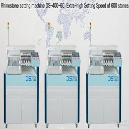 Rhinestone Setting Machine, DS-400-6C(Large size) sets 6 different colors and sizes rhinestones, studs, Max. 600 stones per minute on 16 x 16 inch work area as well as DS450-C( small size /semi Automatic)