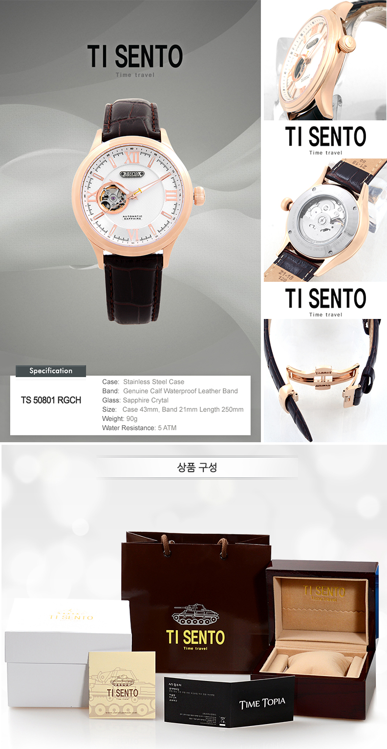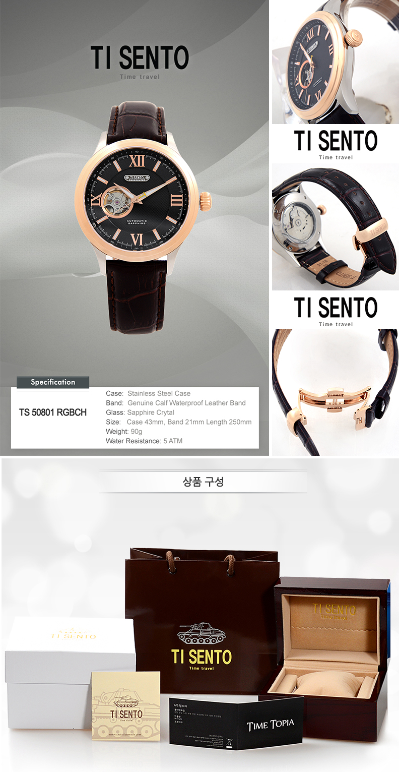 Ti Sento has launched in August 2013 as the first full automatic watch collection developed in South Korea. The brand, Ti Sento, pursues the strong manhood that men in challenge and adventure can only have. Its logo of German tank is motived by its superior mechanical power and high quality functions, symbolizing Ti Sento's classic automatic movement. It is the high-end brand of and manufactured by Christian Mode Co., Ltd.