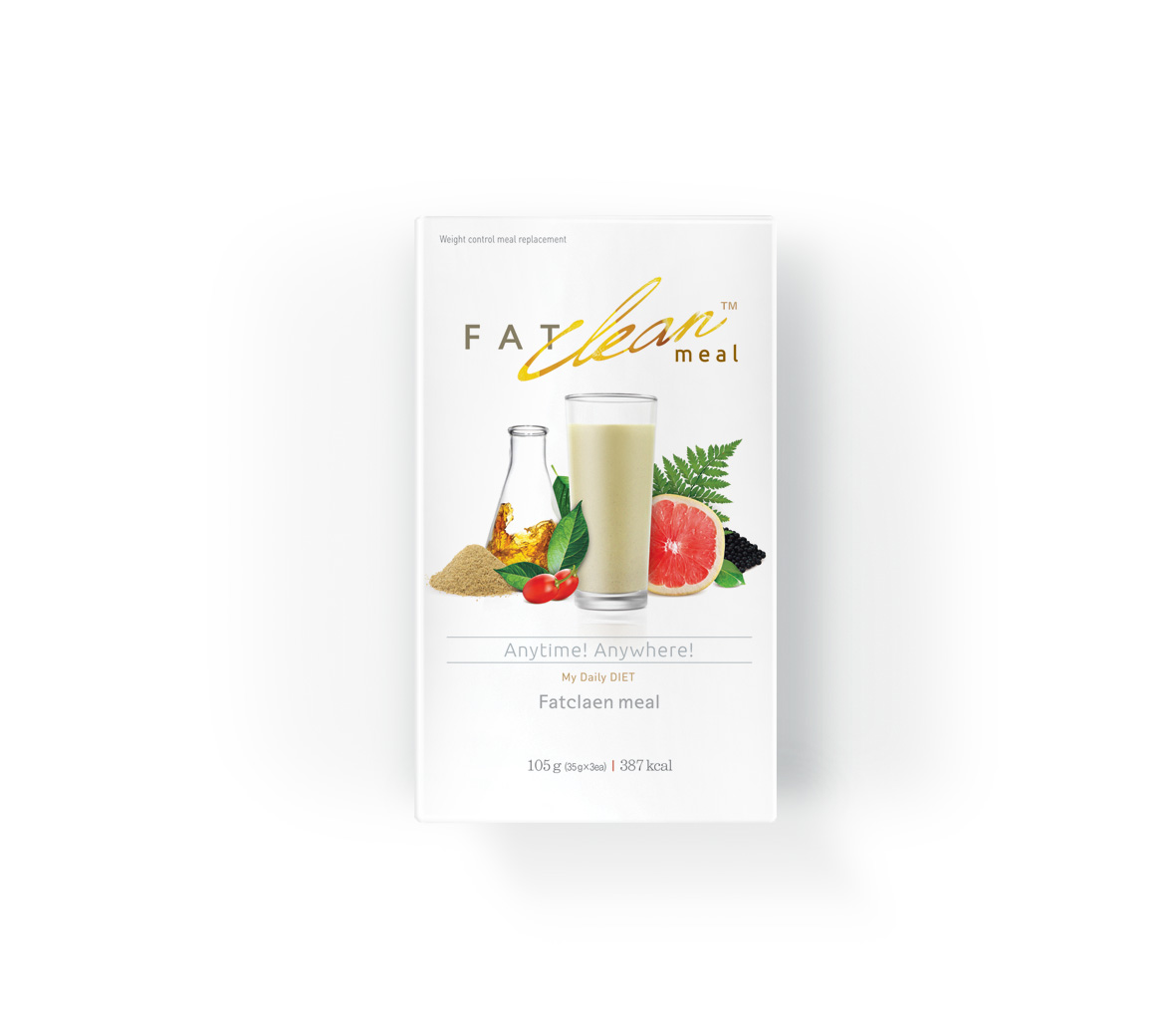 「Fatclean meal」は、天然原料をベースにした製品です。ダイエットに関心が多い忙しい現代人のための体重も調節して簡単に食事を解決するためのダイエット用の食事代用食です。広く知られている食事を抜くダイエット、偏食ダイエット等私たちの体に必要な必須栄養素まで不足にするダイエットとは異なり、欠乏しやすい栄養素まで含有して栄養バランスを合わせて健康的な食事を支援する製品です。