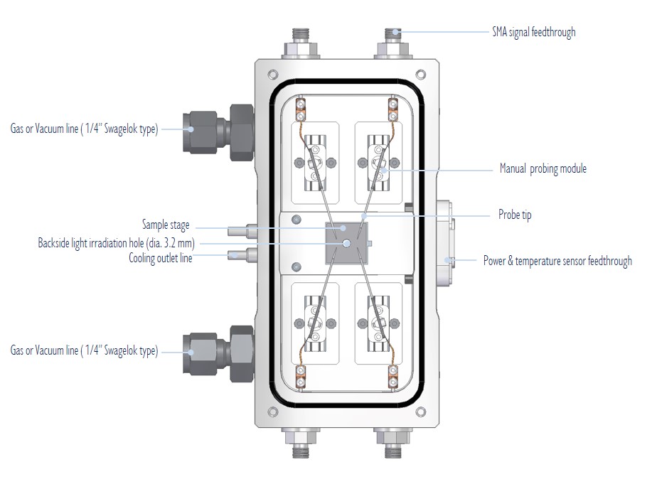 The MPS can perform in a vacuum & gas-tight environment. The chamber is designed in a unique way to make probing very easy.