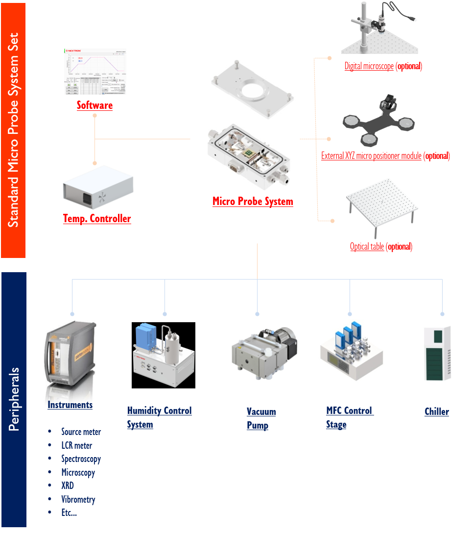 Peltier Type Micro Probe System (MPS-PT) is a subminiature probe system with vacuum/gas and temperature control functions.