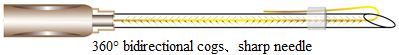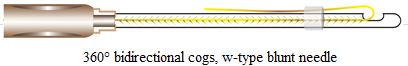 - Bidirectional cogs & gold coated on surface & blunt needle.