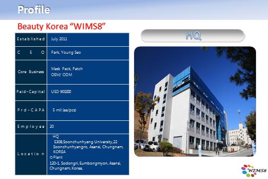 We, BK Cosmetics, have developed diverse and unique mask packs , The Wims 8 is BK cosmetics’ brand name of mask packs.